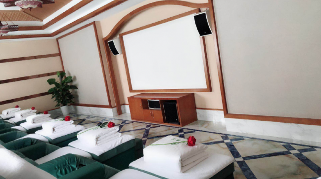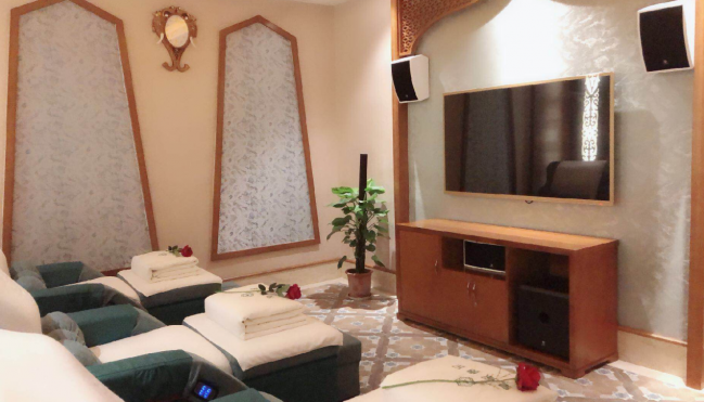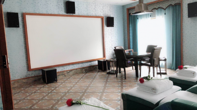 根据甲方要求,整个洗浴城以商务洽谈、朋友聚会、约会等休闲为主,在设计过程中我们充分考虑结合周边消费群体的特质,以此作为装修风格的基础。在音视频设备配置方案上,因甲方要求较高,经过严谨设计,我们最终采用爱谱生投影机,定制高清幕布;在音响选择上,我们花了更大的心思,在反复对比中选用了天逸的微影院系列、影K系列、全景声系列,天逸的功放设备在唱歌、听音乐、看电影等方面提供一体化解决方案,观影的时候低频动下潜有力,中高频细节丝毫毕现,唱歌人声甜美动听,而音乐也能做到细腻通透,舒适悦耳,特别是经过天逸独有的全自动声学扫描自动房间EQ调整,将观影时的现场声像定位发挥的淋漓尽致,也给整个视听效果提升一个档次,所以通过皇家汇皇家贵足足浴城良好的服务,专业的技术,获得广大客户的一致好评,口碑效应明显。在南昌南昌莲西大道的分店影院足疗包厢项目引起全城轰动。