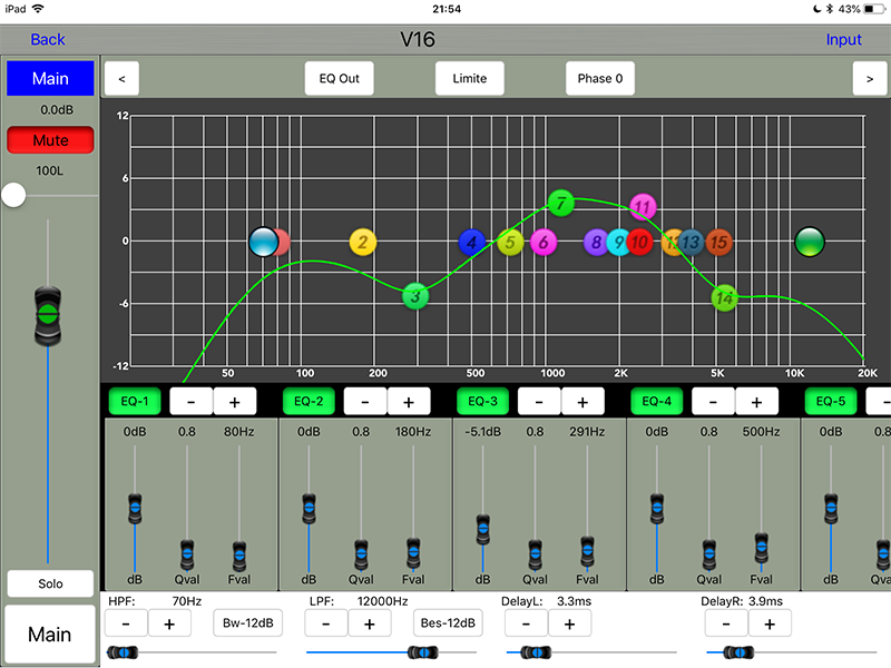 12:输出处理 -高低通滤波,15段参数均衡,压缩器,延时,相位