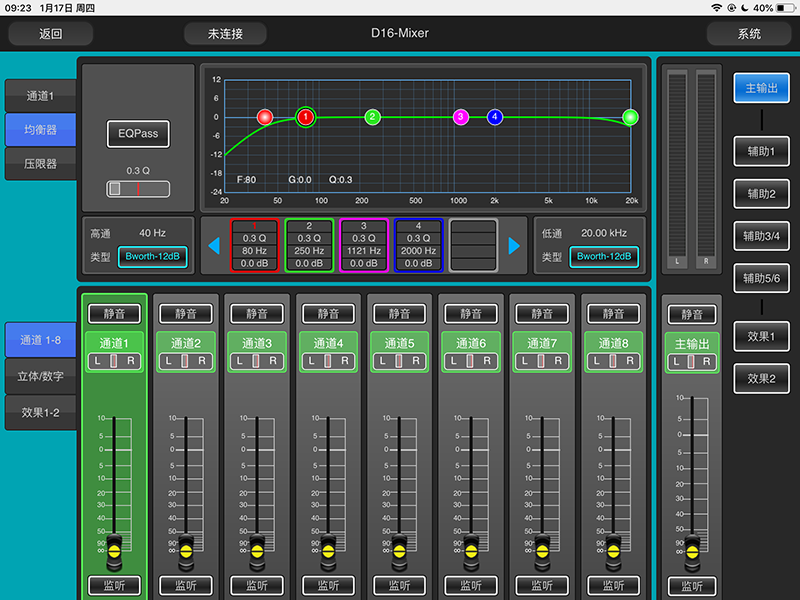 3,ipad控制 通过ipad APP可对D16进行所有操控,包括增益,EQ,动态,推子