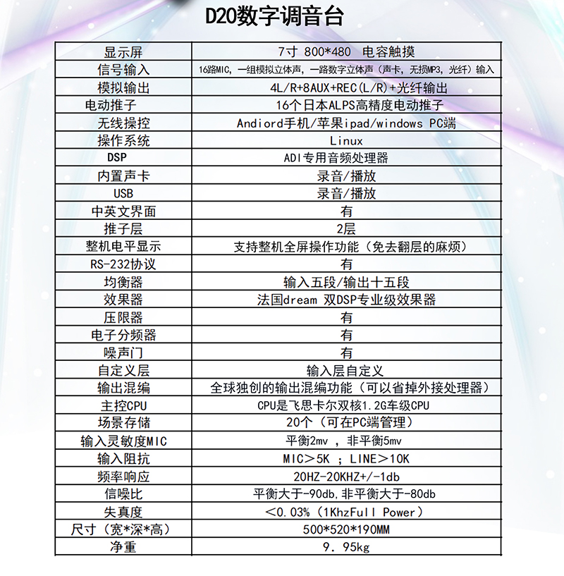D20数字调音台是追梦进入数字调音台市场的全数字"专业调音台"
