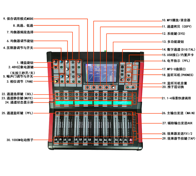 数字调音台=压限器+效果器+分频器+模拟调音台+播放器