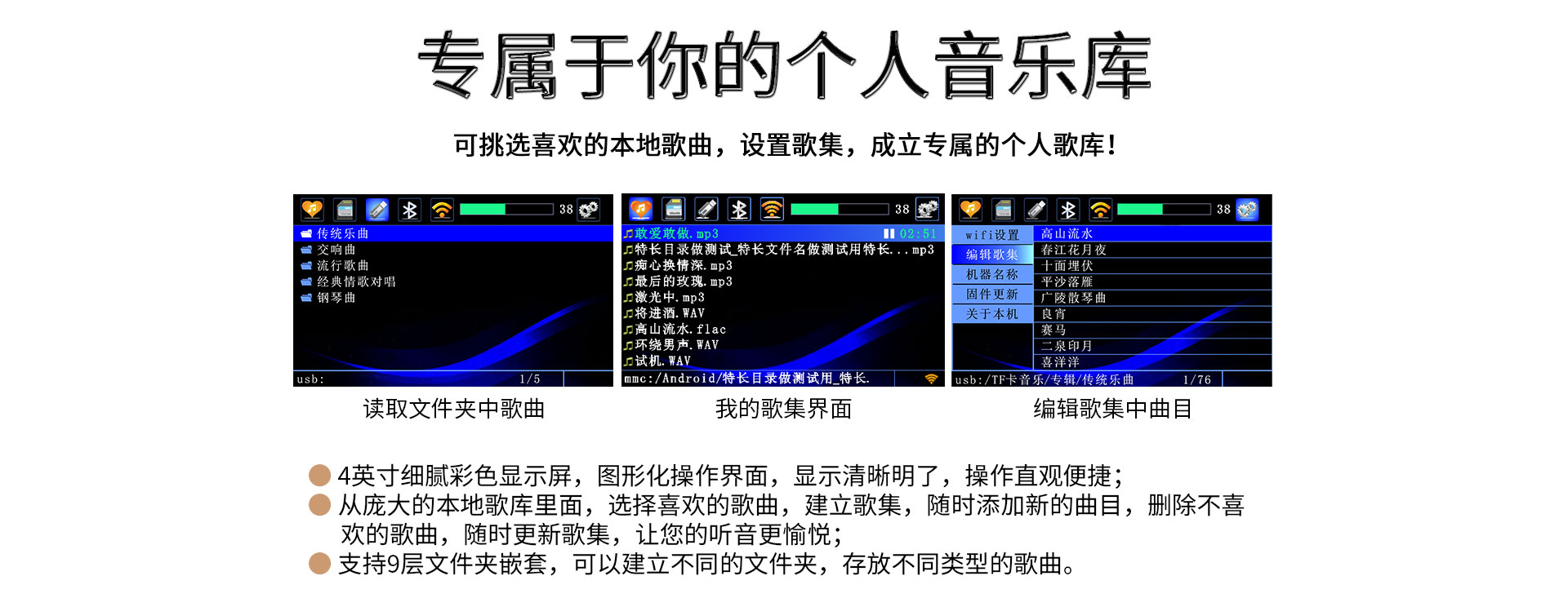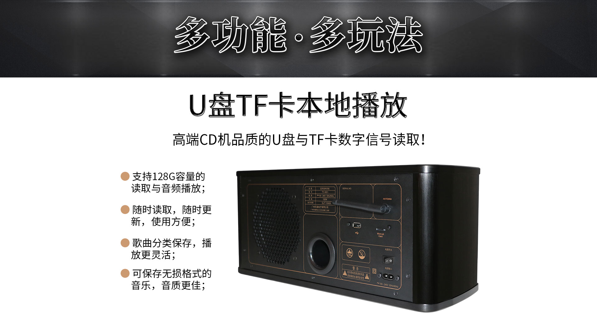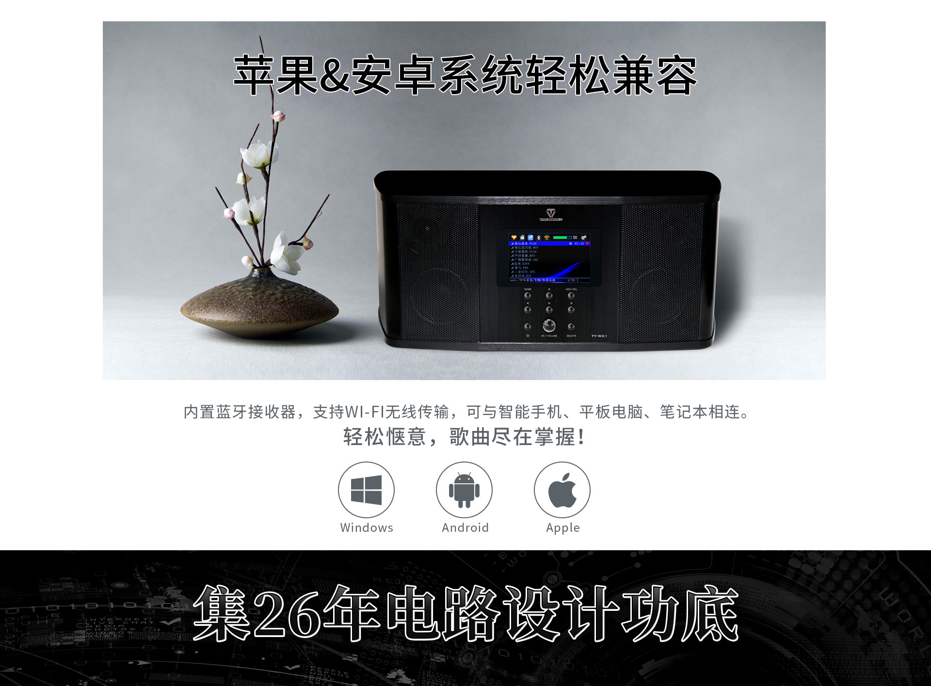 三、主要功能表述 可连接多种设备:手机、IPAD、笔记本、台式电脑、蓝牙、SD卡、U盘、CD机、功放。 支持WIFI热点传输:可进行点对点的直接传输,播放手机或电脑中的本地音乐,传输稳定,抗干扰能力强,无损音质,效果更佳。WI-FI无线音频传输具备AP模式(热点直连模式)和net模式(局域网模式)2种工作方式。 无需布线:WI-FI传输不受布线条件的限制,可以使房间更加整洁。 传输速度快:WI-FI的传输速度远超蓝牙传输,传输品质高:可传输音频源码,音质更好,信号质量更佳。 支持局域网传输:手机、笔记本电脑以及本机的WIFI音频模组同时接入无线路由器组成局域网连接的方式,可以随心所欲的播放网络歌曲,坐享庞大的网络歌库。
