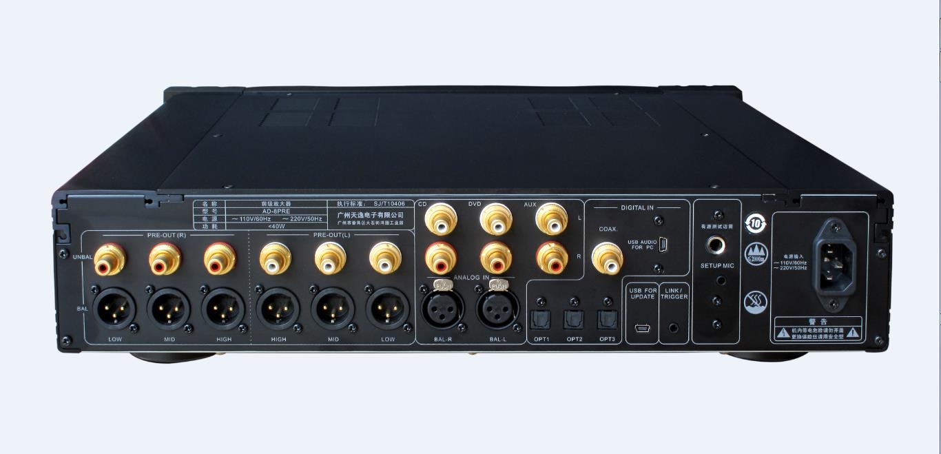 该套电子分频功放属于前后级分体式高端旗舰级别,是天逸音响多年来积累的高保真功放之经验和时下音响业界数字声效高新技术结合的完美产物,其核心的技术要点全部集中在前级电子分频和数模解码整形放大前级输出电路中。