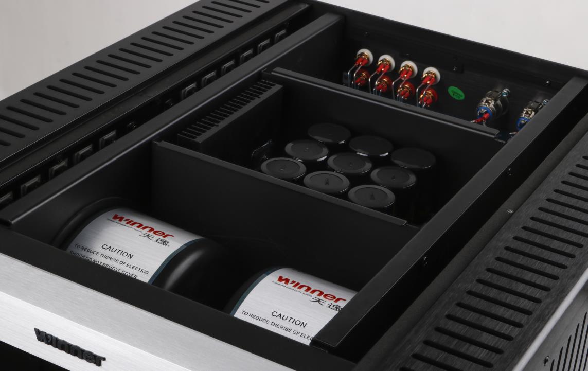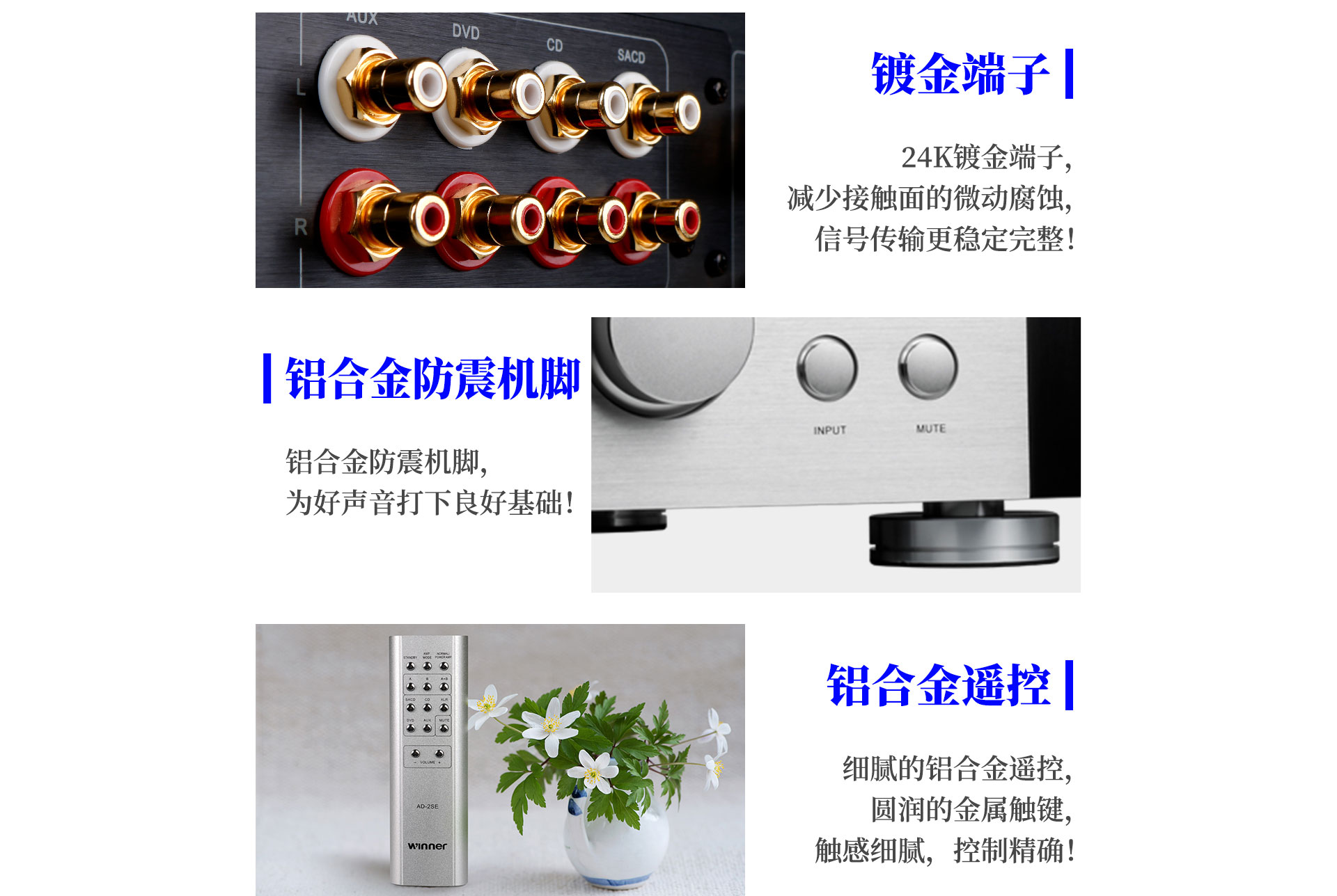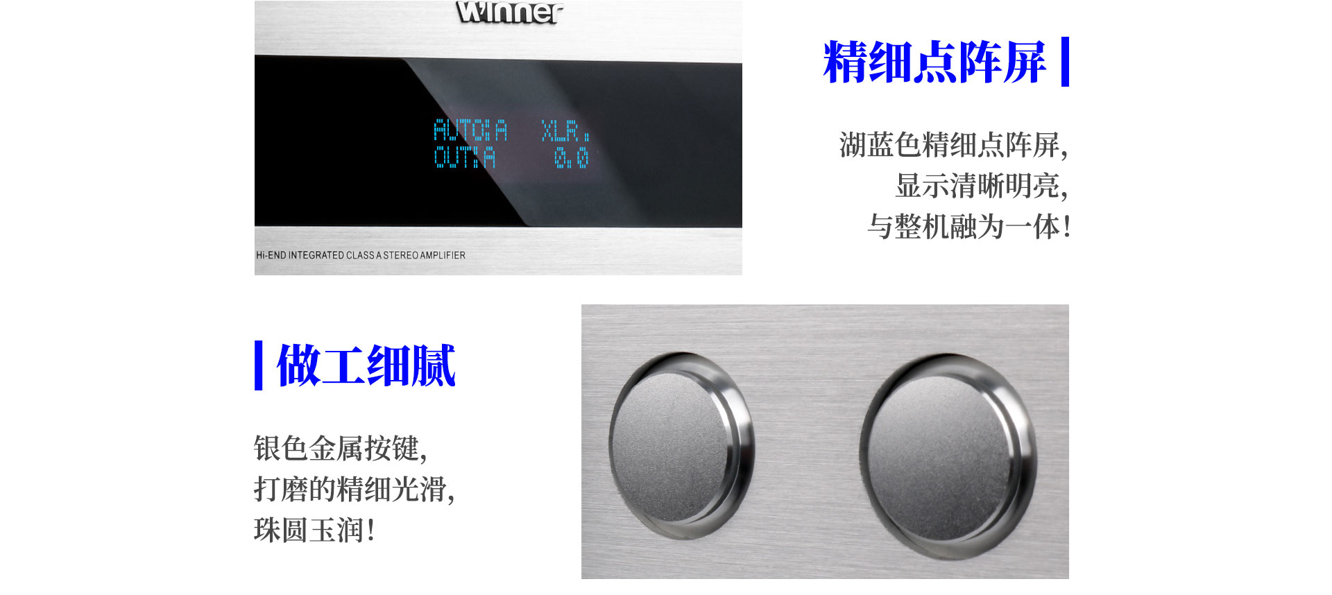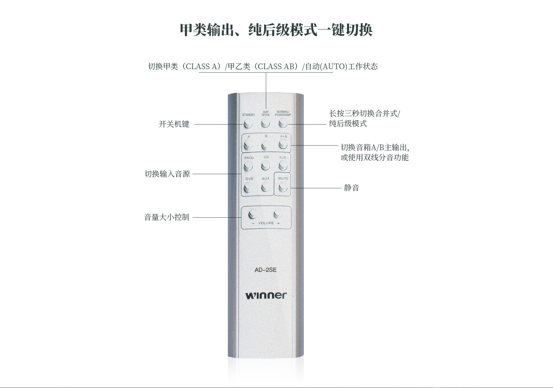 <span line-height:2;"="" style="font-size: 16px;"> 一、外观特点 简洁流畅的金属线条,全身披挂的黑白色铝合金铠甲,标志性的近百斤的体重,很好的诠释着纯甲类的特征。而硬朗挺拔有如西楚霸王的高大威猛,细腻温润的湖蓝色液晶点阵数码显示屏,又让这铁甲硬汉平添了几许温润的柔情,更让有纯甲情结的音响发烧友们一见钟情。 二、电路及用料设计 AD-2SE总共有5大块电路板,从头至尾为电源整流滤波大水塘(容量大的电容)、左右声道放大电路板、输入前级放大电路板和整机显示控制板,各部分电路板分别安居于各自的屏蔽空间,工艺整洁,视觉效果相当清爽!机器前部两个600W的环型电源变压器相对而坐,以获得整机的重量平衡并为甲类电路提供强劲的能力之源。 居于整机正中央的主电源板,12只12000μF/63V的MARCON滤波电容和带散热器的整流全桥堆,采用了整齐的矩阵式对称排列手法布局,无论在体积、重量和色彩搭配上,都让人眼前一亮:颇具有份量而阵容精锐、蔚然壮观。 该机的前级为获得最佳的信号切换分离度,选用了高度密封的无音染继电器作为音源切换,并特别选用了优质全密封防尘电位器作为音量控制,在最易受到干扰的音量开关和讯源切换部分,则施以全金属罩屏闭。从而使得整机的抗干扰能力、信噪比等关键指标,得以最大限度的提高。 电路上,AD-2SE为确保最佳的音质音色和尽可能高的信噪比指标,前级放大不惜成本选用了当今倍受好评的美国原装靓声运放OPA2134,并采用了双4脚镀金插座连接形式,以方便发烧友日后的摩机升级换代。后级放大输入级采用了镜像菱形对称差分输入方式,并在电压放大级采用了著名的CASCODE电路及恒流源负载,从而能令信号的相移减至最小、频率响应宽阔。末级的功率输出级,左右声道各选用了12对150W的安森美MJW0281A/MJW0203A大功率管(整机共用了48只)并联输出! 用料、制作方面,除上述之外,机内所有的电阻均选用优质五色环金属膜电阻。在可能影响音质的主要通道,则选用了备受好评的优质MKP聚丙稀电容。其余如电压放大和电流放大、独立分别供、不超过3%误差的功率管精密配对、远离大电流的弱信号隔离技术等,均为Hi-Fi的大手笔。