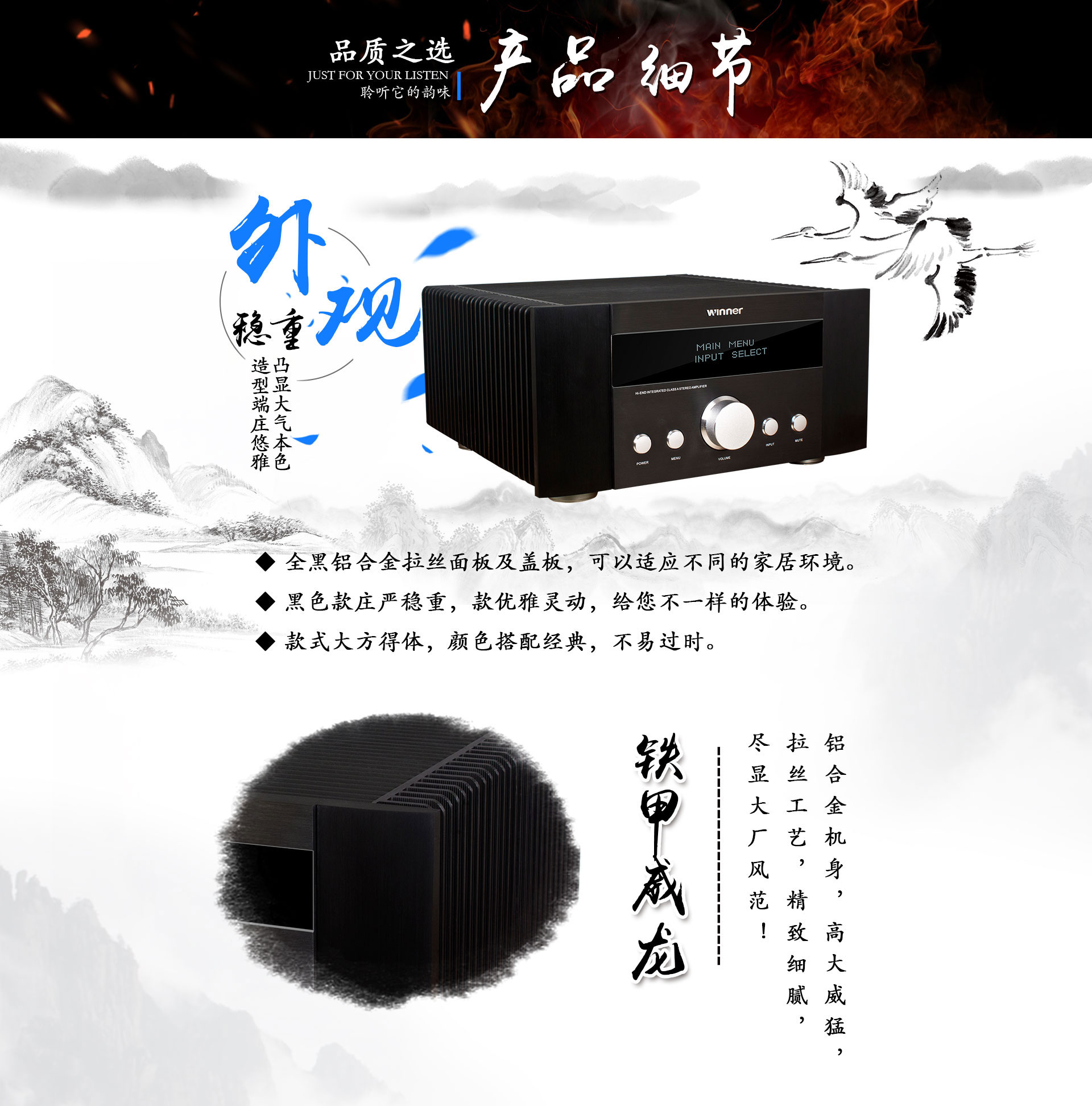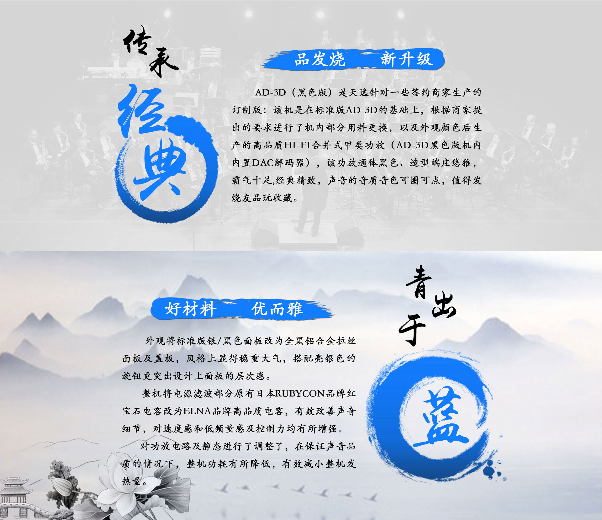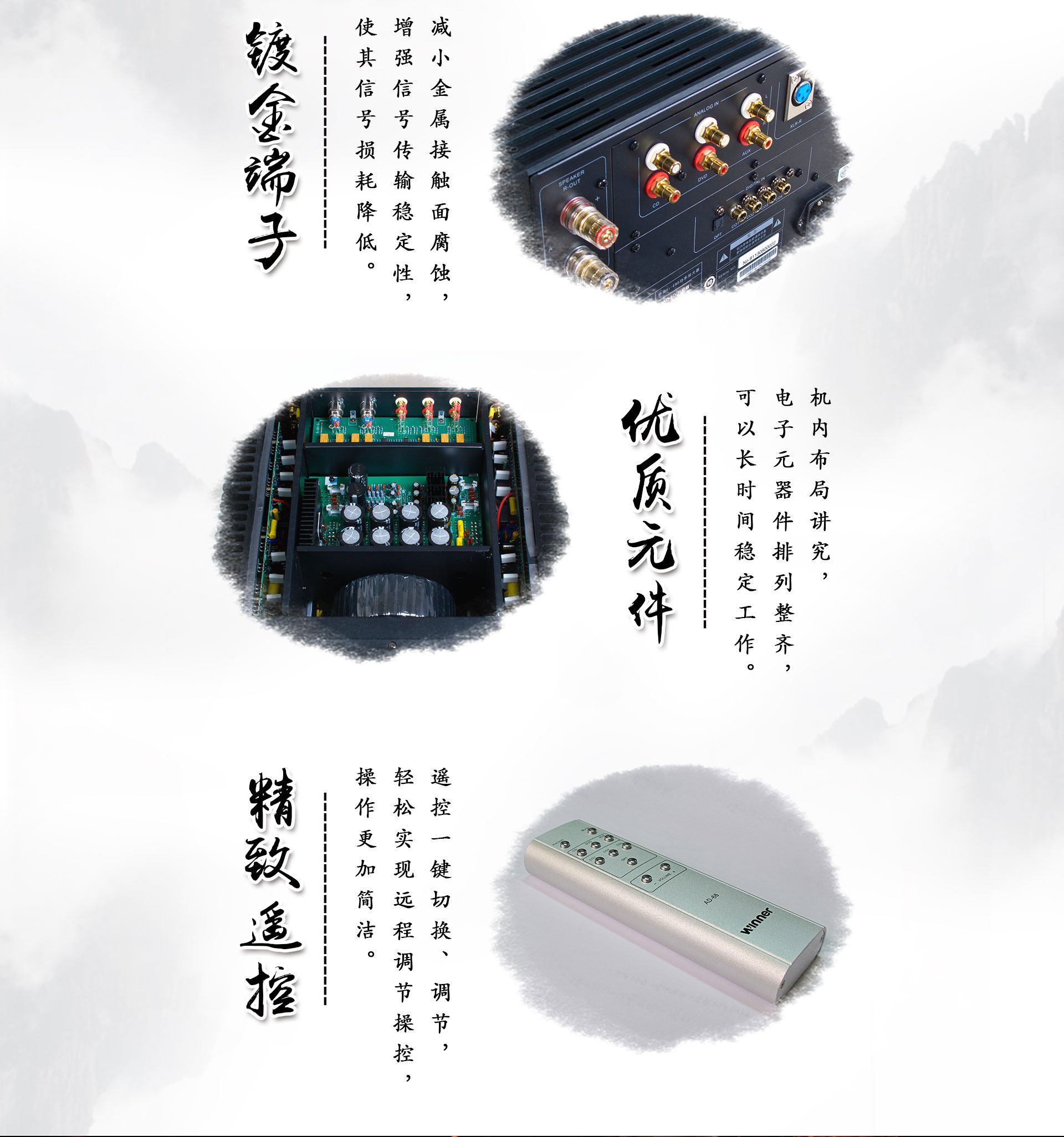 AD-3/3D(黑色版)甲类合并式Hi-Fi功放概述 AD-3DHI-END 该机与好评如潮的天逸如出一辙,其电路形式和调试标准与同样按照高标准,严要求制作,采用配对精度很高的大功率名品功放管;整机电路采用了音响界备受推崇的全平衡传输及放大方式,是一台彻头彻尾级全平衡发烧功放。——全对称、全平衡、差分输入到差分(桥接)功率输出。将全对称和全平衡有机的融合为一体的电路形式,极大的改善了重放音乐的纯净度,基本达到了全平衡的至高境界。 XHI-FI为进一步加大功率推动力,该机在推动级又特别增加了一级大电流推动电路,令输出的电流进一步加大,致使整机的推动力更加的巨大。输出级采用差分功率输出电路,这种输出电路的驱动力十分强劲,动态凌厉。它将主电压放大电路产生的正负对称信号进行充分扩流,从而形成差分输出,轻易驯服如丹拿信心系列和出名难推的、等音箱该机的每声道用了对进口大功率管(整机共用了只)!如此豪华的阵容绝非一些山寨小厂在广告中宣传的虚假平衡功放所能同日而语!而只有这种不惜成本使用双倍的器件将全对称、全平衡从头至尾有机的融为一体的电路形式,才能得到最高的共模抑制及最高的信噪比,将谐波失真“抵消”至最小程度! 三、音质特性 AD-2SE, 四、特别说明 AD-3/3DAD-3DAD-3DACD/AAD-1955DACAD-185324bti/192KHzDAC126dB!timing resolutionD/AjitterDVDCDDAC 产品型号:(黑色版) 2 90dBA整机增益:>(计权) 20Hz-70KHz(+1/-3dB总谐波失真度:<(,正常工作条件) 8每声道输出功放:(Ω),,,) 28.4Kg 33.5Kg 444×418(460)(宽×高×深) 650412644mm<span "="" style="font-size: 16px;line-height: 2">(宽×高×深) |