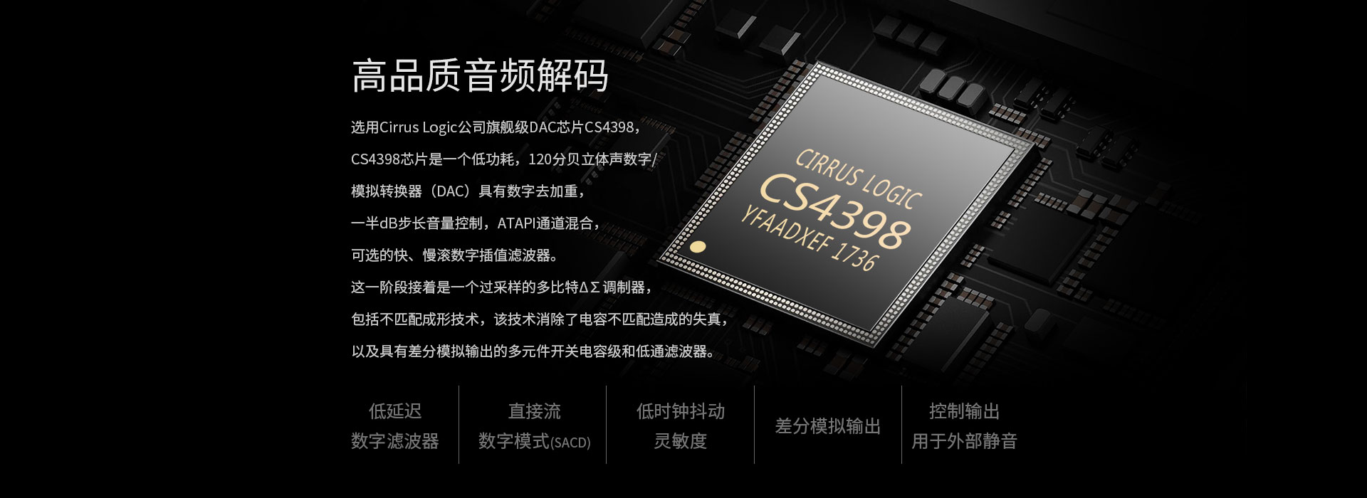 TI公司的发烧级运放OPA1688(滤波整形放大),具高增益、低失真、低噪声、宽频带的特色,可为用户带来震撼的听觉享受。高性能数字发烧芯片CS8406,依托CS8406内部的高精度硬件时钟分频电路进行信号反馈,进一步降低噪声和失真。