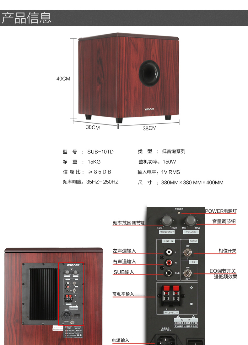 天逸WINNER-SUB-10TD 有源超重低音炮