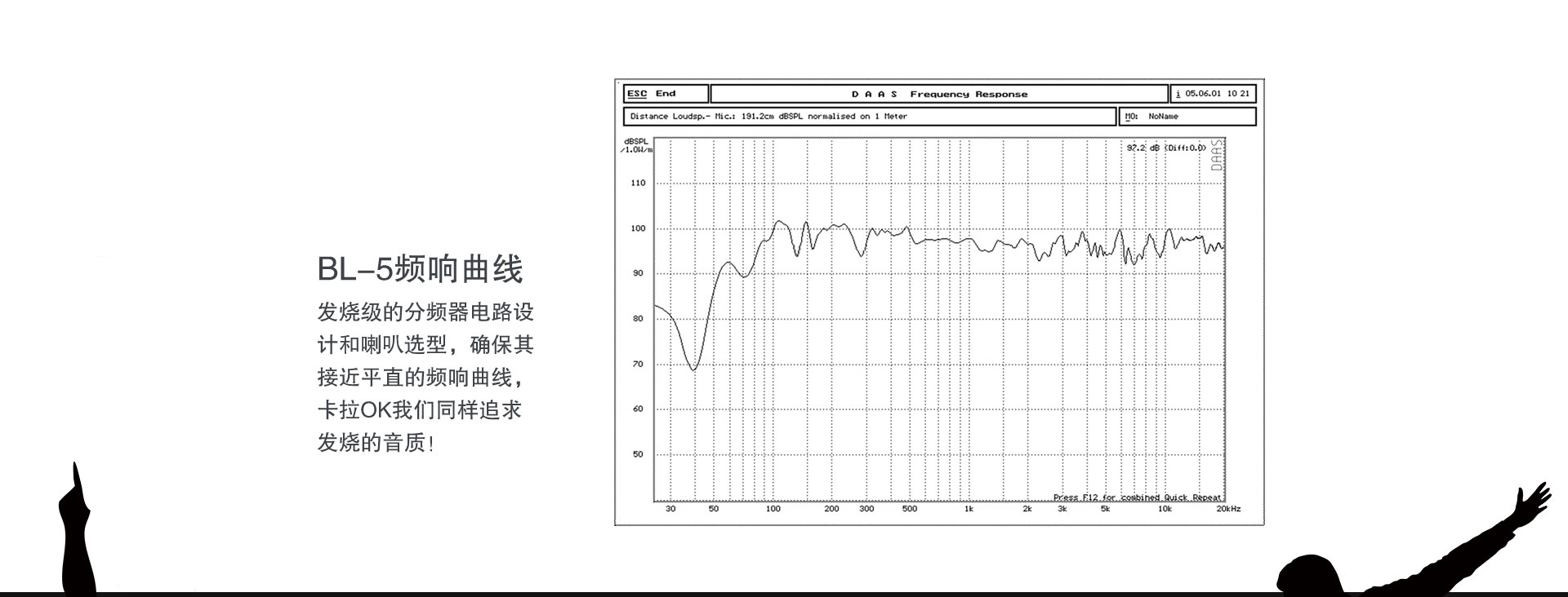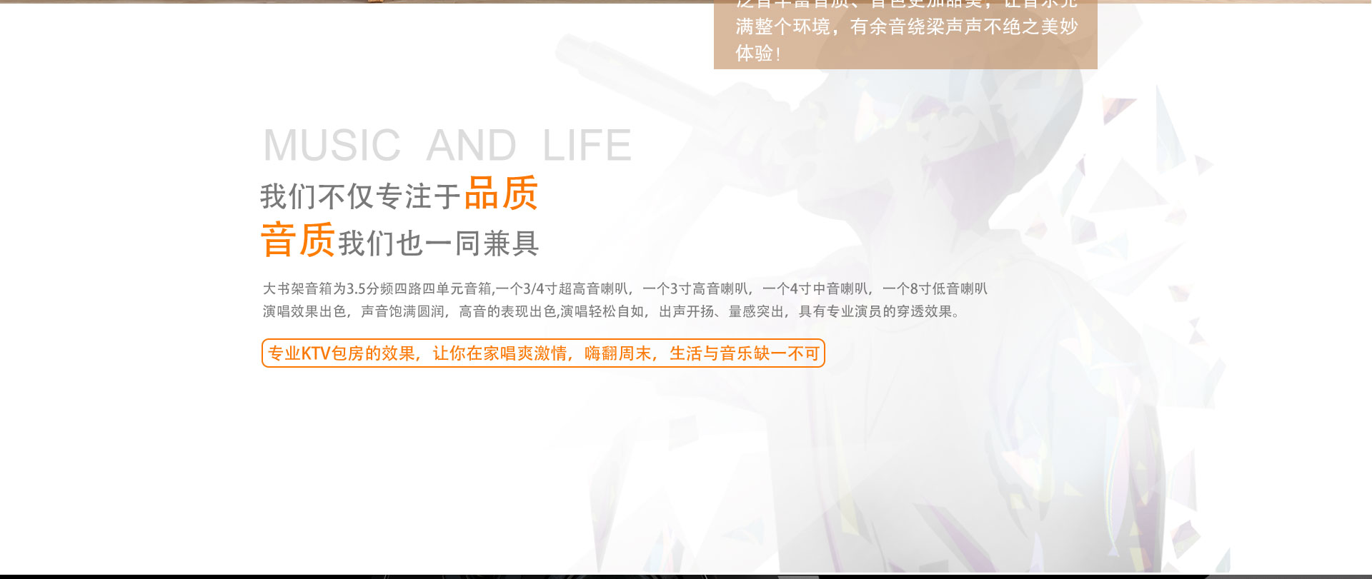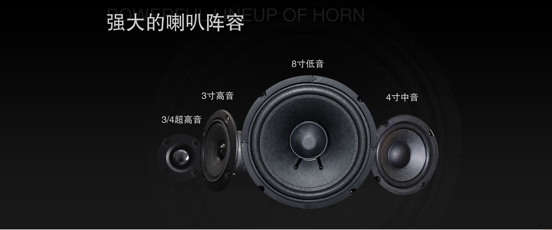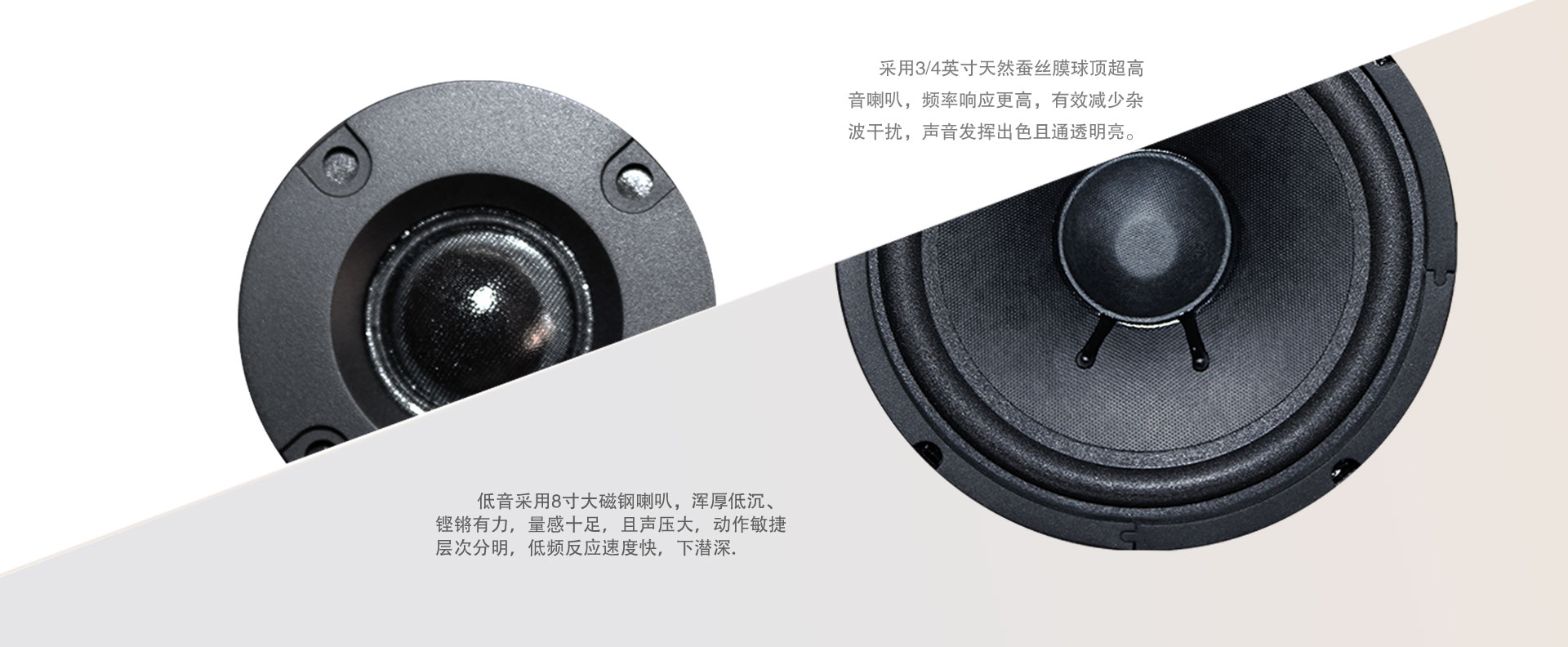 产品简述:简介:BL-5 百灵五号是天逸专注于品质音质一同兼具的高端家庭卡拉OK音箱,选用了具有8寸大音圈的超长冲程低音喇叭、一只4寸的中音喇叭、一只3寸的高音喇叭以及一只3/4寸的超高音喇叭,组成了功率承受能力相当强、灵敏度很高、现场感和震撼力非常好的三分频四单元书架音箱。该箱采用黑色亮光烤漆工艺,经典黑色能与任意的装修风格融为一体,是家庭KTV的必备神器!