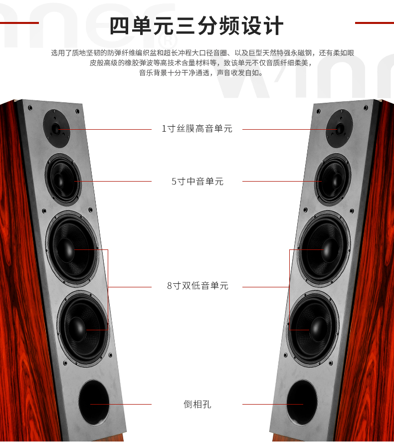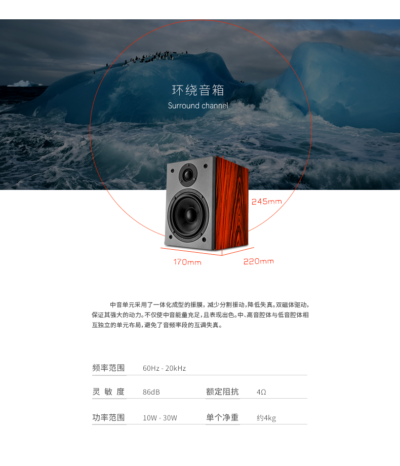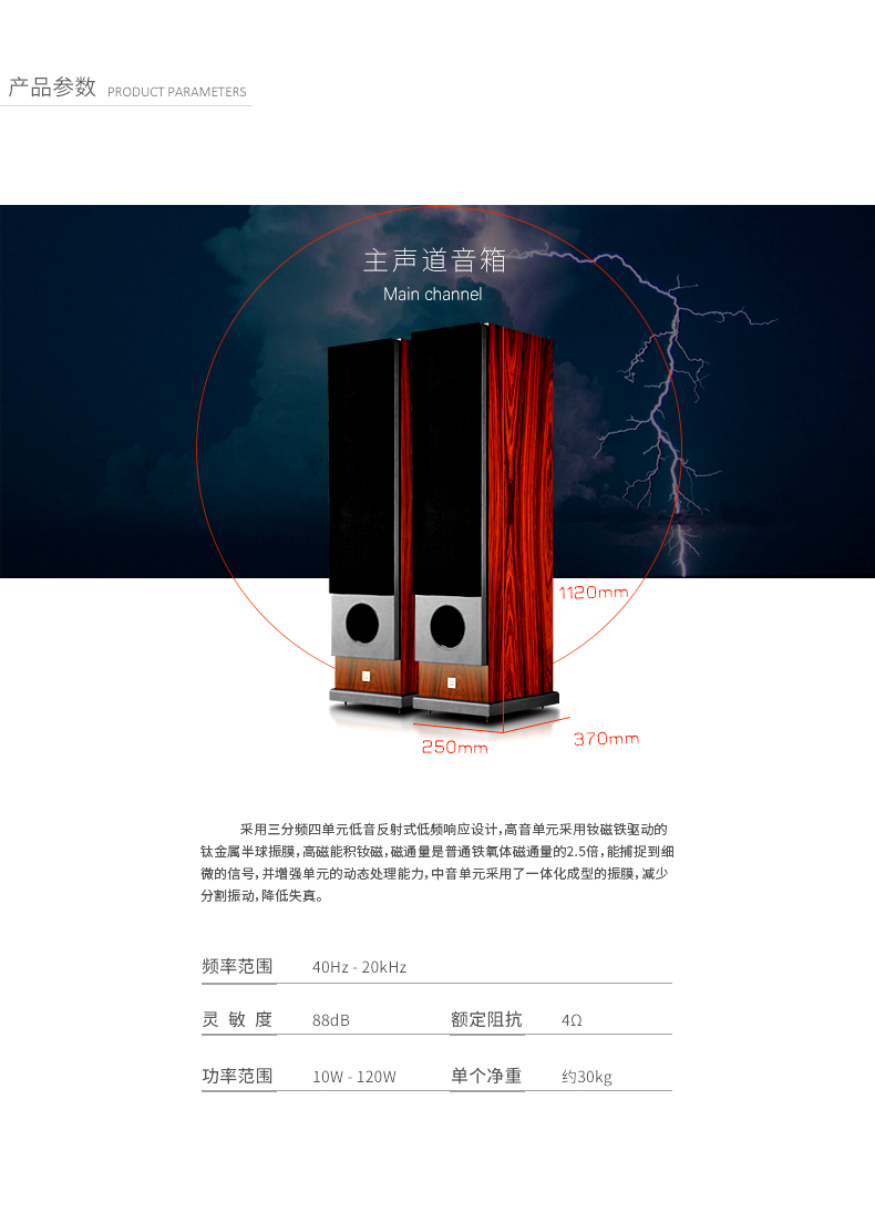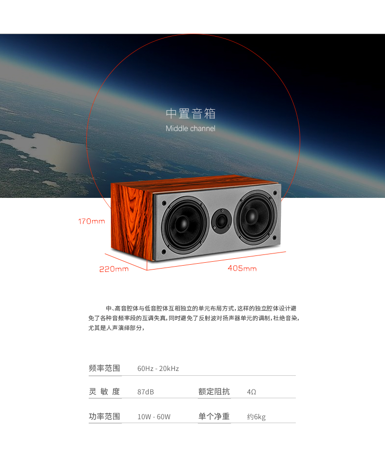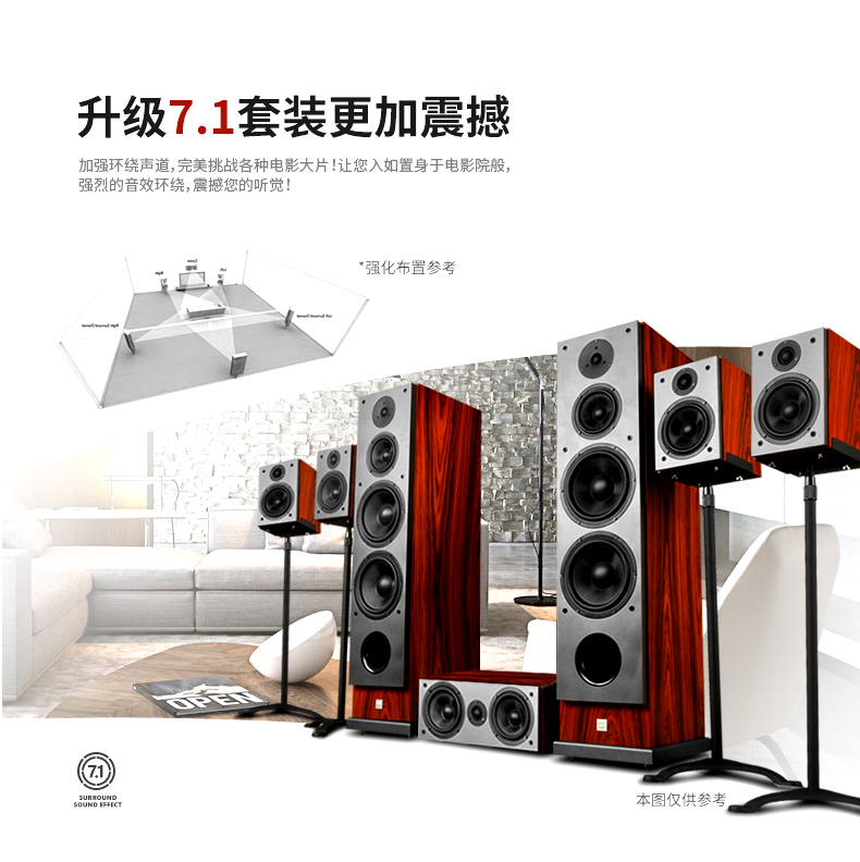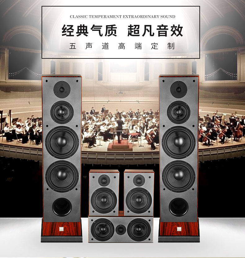 产品简述:简介:高清九号家庭影院音响,带有双8寸超重双低音,超大动态响应,采用四单元三分频低音反射式低频响应设计,5.1环绕音箱,可升级为7.1套装,加强环绕声道,观看各种电影大片让您犹如置身于电影院般,强烈的音效环绕,震撼您的听觉!